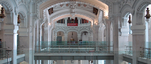 - Quando chegamos, pedimos no balcão de informação a senha pra subir ao mirante. Enquanto esperávamos a hora programada, visitamos o hall de entrada, onde está a exposição sobre a história do Palacio.
